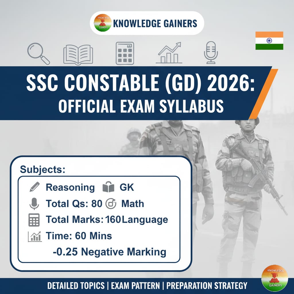 This blog provides an in-depth look at the SSC Constable (GD) 2026 syllabus, based on the official recruitment notice. The Computer-Based Examination (CBE) is the first and most critical step in the selection process, consisting of 80 objective-type questions worth a total of 160 marks. The examination is divided into four sections, each designed to test specific skills required for a career in the Central Armed Police Forces. All questions are of Matriculation (10th Class) level.