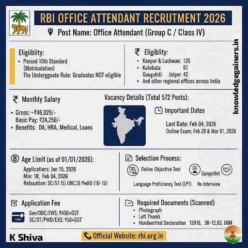 The Reserve Bank of India (RBI), as the cornerstone of the nation’s financial architecture, maintains an organizational structure that necessitates a robust and diversely skilled workforce. Beyond the high-level policy analysts and economic researchers, the functional integrity of the Bank relies heavily on its support staff. The announcement of the 2026 recruitment for the post of Office Attendant, focusing on the Panel Year 2025, represents a significant institutional effort to revitalize its Group C cadre across 14 regional offices. This recruitment drive, involving 572 vacancies, is designed to integrate individuals who possess a fundamental secondary education while ensuring they are deeply rooted in the linguistic and cultural contexts of the regions they serve. This analysis examines the multi-faceted requirements, procedural protocols, and strategic implications of this recruitment cycle within the broader context of public sector employment in India.